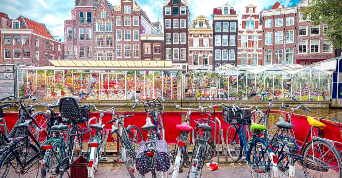 Amsterdam Bikes Houses Colorful. Source: Shutterstock